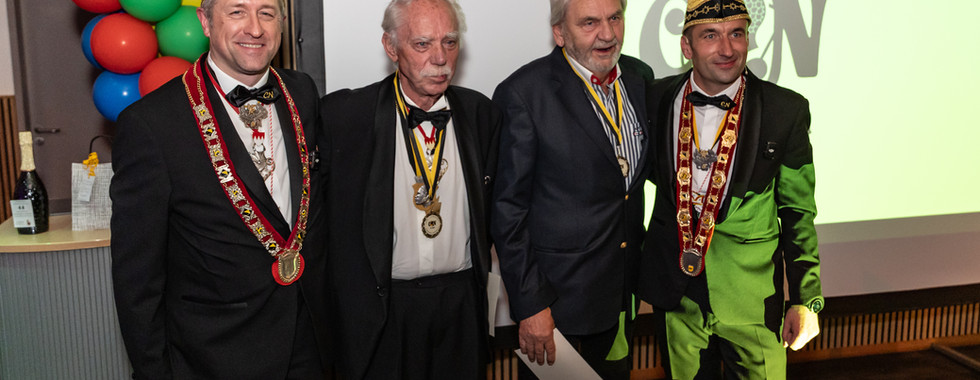 Anschließend ehrte die Narrhalla prägende Mitglieder für 44 Jahre Vereinsverbundenheit: Hans-Jürgen Krautwurst und Klaus Wöhner erhielten den Treue-Orden „Vier mal Elf“ des Vereins. Beide zählen zu den Elferräten der ersten Stunde und Wegbereitern für den Erfolg des Vereins.